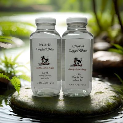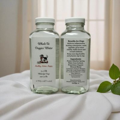 Discover the WholeFit Doggies' Water difference. A premium doggies' water made with the purest ph balanced imported spring water from Iceland and our patent-pending proprietary organic mineral blend replenishing your dog the minerals it is composed of, hydration at the cellular level, more focused energy, a curbed appetite and swifter recovery after any injuries or surgeries.